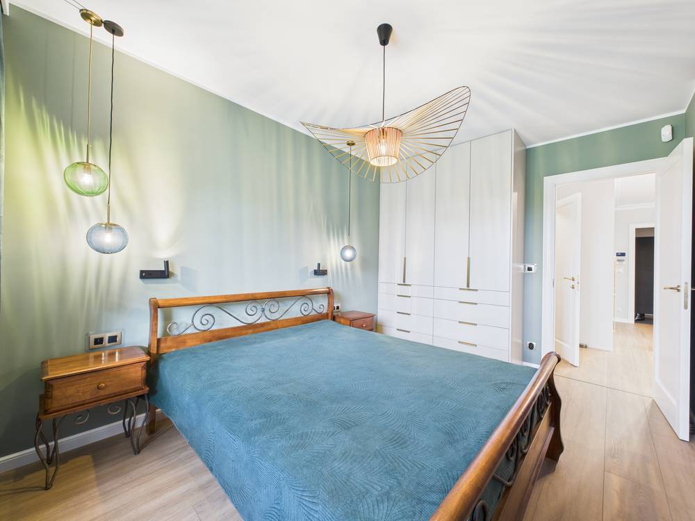 - bedroom: a large bed, bedside tables, and a spacious built-in wardrobe;