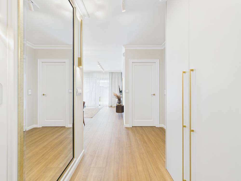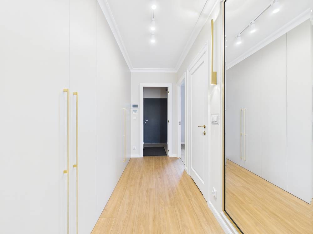 - w korytarzu zabudową stolarską gwarantująca miejsce do przechowywania;