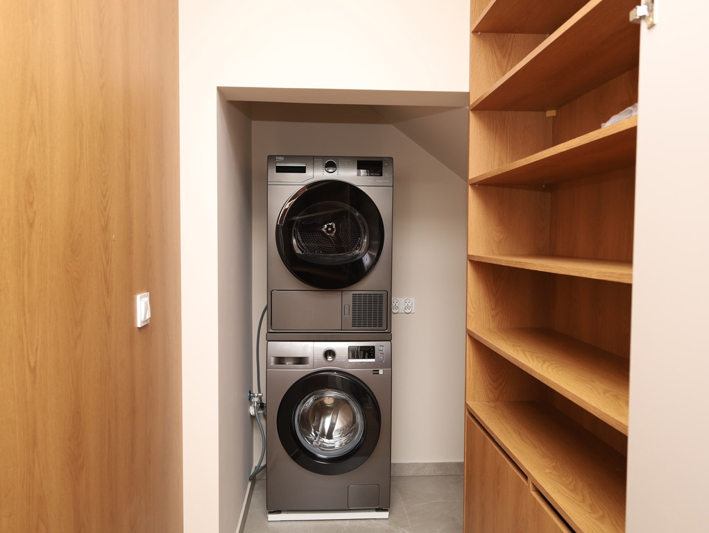 - storage: a washing machine, dryer, and vacuum cleaner.