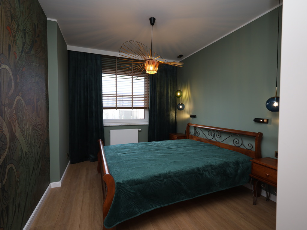 - w sypialni duże łóżko, stoliki nocne, pojemna szafa w zabudowie;