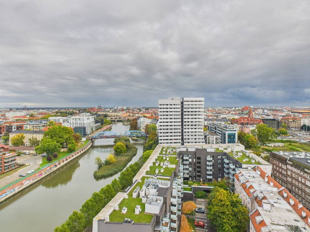 Centrum Wrocławia, tuż przy bulwarach nadodrzańskich. W kilka minut dojdziesz na Stare Miasto. W pobliżu liczne restauracje, kawiarnie i świetna komunikacja miejska. Budynek oferuje concierge, całodobową recepcję i ochronę.