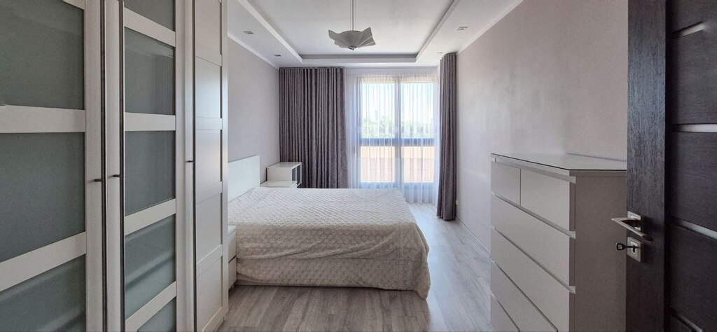 - Sypialnia: przytulne wnętrze gwarantujące komfortowy sen i prywatność; przestronna szafa i komody zapewniają dużo miejsca do przechowywania. Z sypialni można wyjść na balkon z widokiem na Sky Tower.