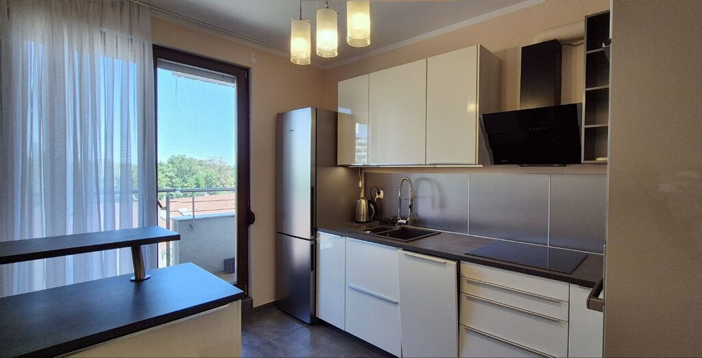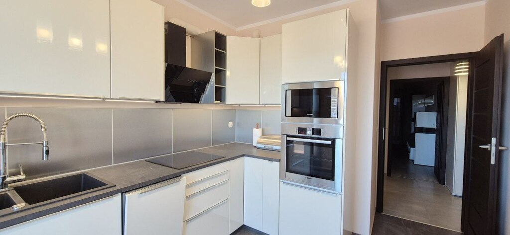 - Osobna kuchnia z wyjściem na balkon jest w pełni wyposażona i oferuje wygodne przestrzenie do gotowania i spożywania posiłków.