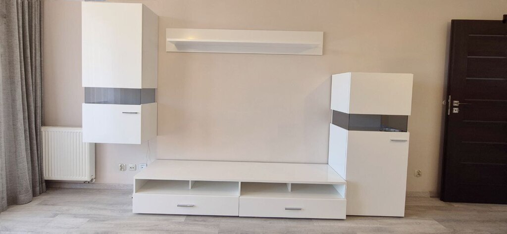 Mieszkanie nigdy wcześniej nie było wynajmowane. Oprócz mebli widocznych na zdjęciach, salon będzie umeblowany na życzenie pierwszego najemcy.