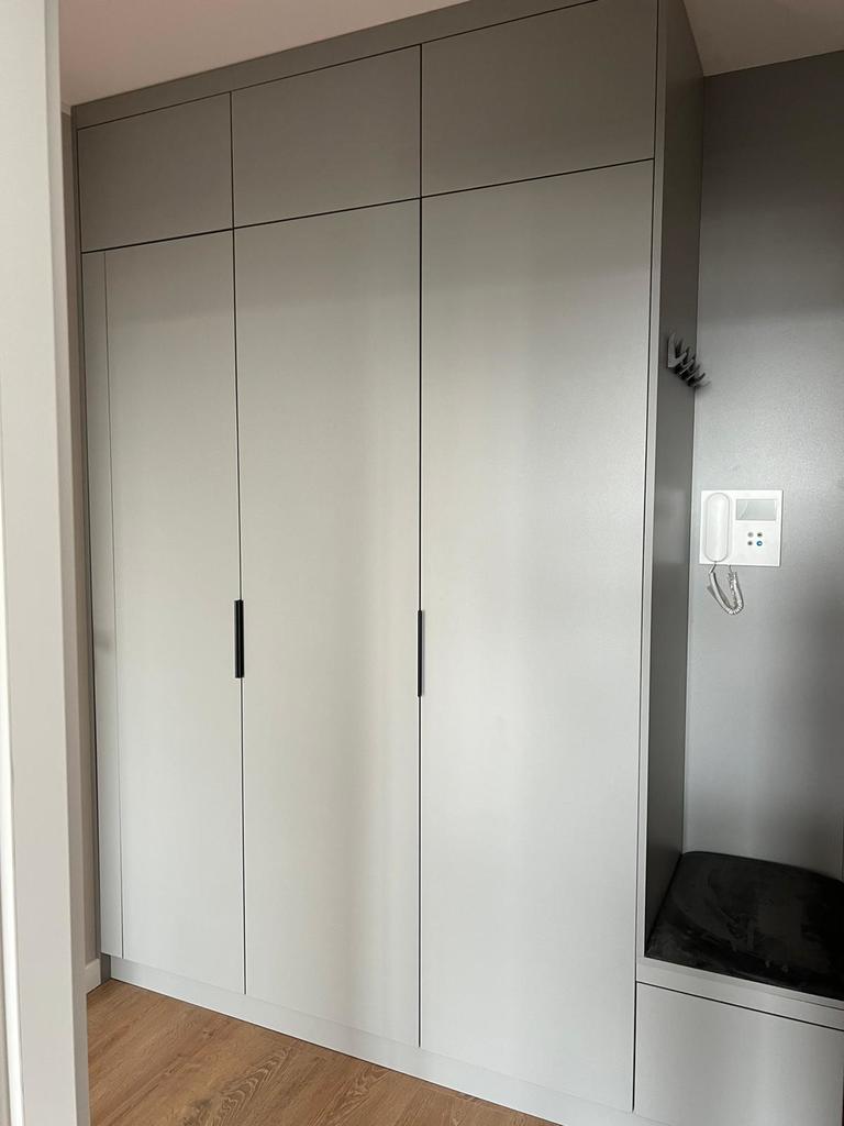 > przestronny przedpokoju z zabudowanymi szafami na wymiar
