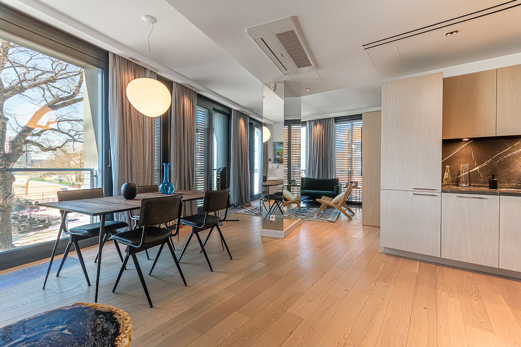 Apartament znajduje się w niezwykłym, kameralnym budynku Marina III, mieszczącym jedynie 23 apartamenty, całodobowo chronionym i monitorowanym. Wybudowana w sercu Wrocławia inwestycja malowniczo wkomponowała się w przestrzeń kameralnej wyspy na Odrze, położonej pomiędzy zabytkowymi mostami Uniwersyteckim i Pomorskim, naprzeciwko wspaniałego gmachu Uniwersytetu Wrocławskiego. Ta lokalizacja gwarantuje bajeczny widok o każdej porze dnia i roku.
