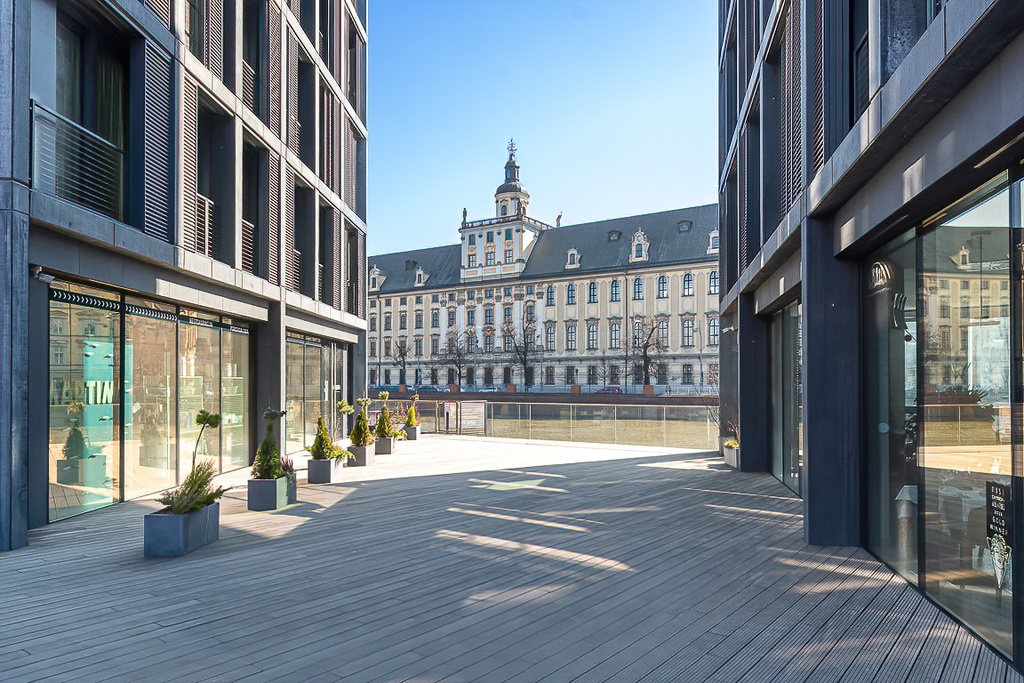 Na wyciągnięcie ręki znajdują się najpiękniejsze tereny spacerowe Wrocławia: Wyspa Słodowa, Ostrów Tumski oraz nowo odrestaurowane bulwary wzdłuż wybrzeża Odry.