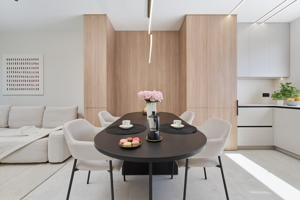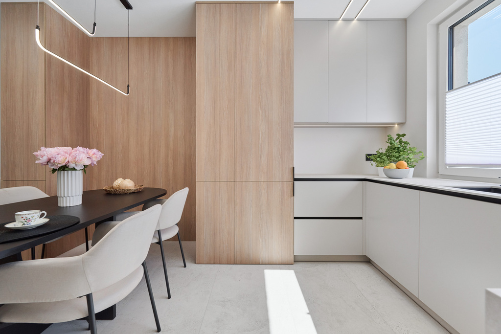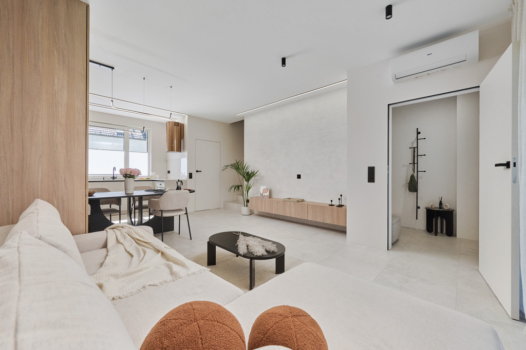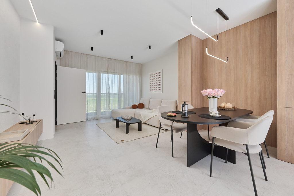 To nie jest kolejne gołe M z białymi ścianami. Mieszkanie zostało zaprojektowane z myślą o przytulności i funkcjonalności, w stylu nowoczesnym z nutą ciepła. Tu od razu czujesz się jak w domu.
