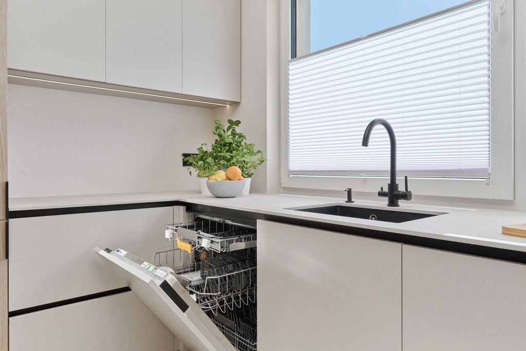 Wysoki standard wykończenia: w mieszkaniu zastosowano wysokiej klasy materiały oraz nowoczesne rozwiązania. Od oświetlenia po rozkład gniazdek – wszystko zostało zaplanowane z myślą o wygodzie i estetyce. Kuchnia i meble w zabudowie nie tylko cieszą oko, ale i sprawiają, że przestrzeń jest maksymalnie wykorzystana.