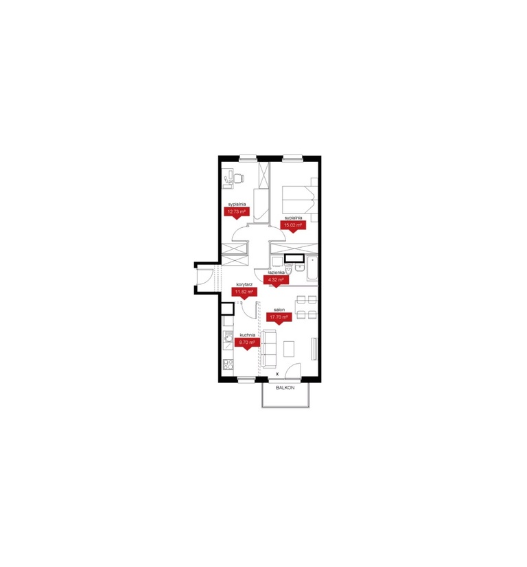 - Pokój dzienny z aneksem - opcja wydzielenia widnej kuchni