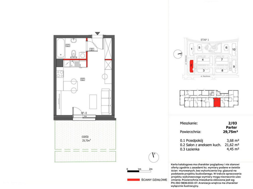 Powierzchnia i układ Łączna powierzchnia mieszkania wynosi 29,75 m², na którą składają się: