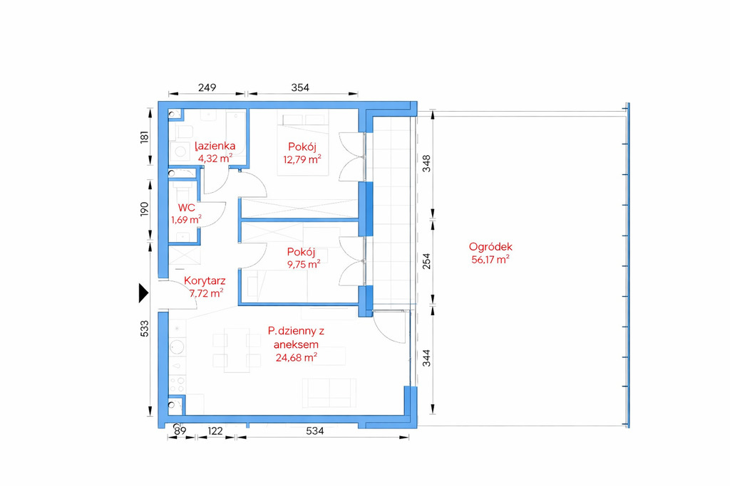 Dodatkowo do mieszkania przynależy duży o ogródek o pow. 56 m2.