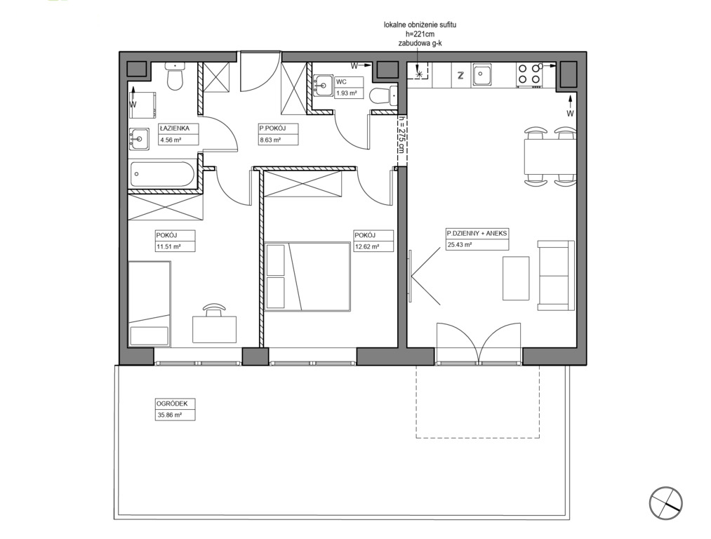 - Pokoju dziennego z aneksem