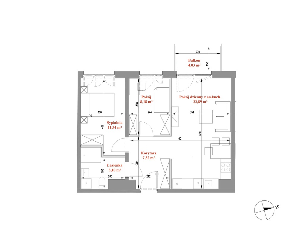 - Pokój dzienny z aneksem kuchennym