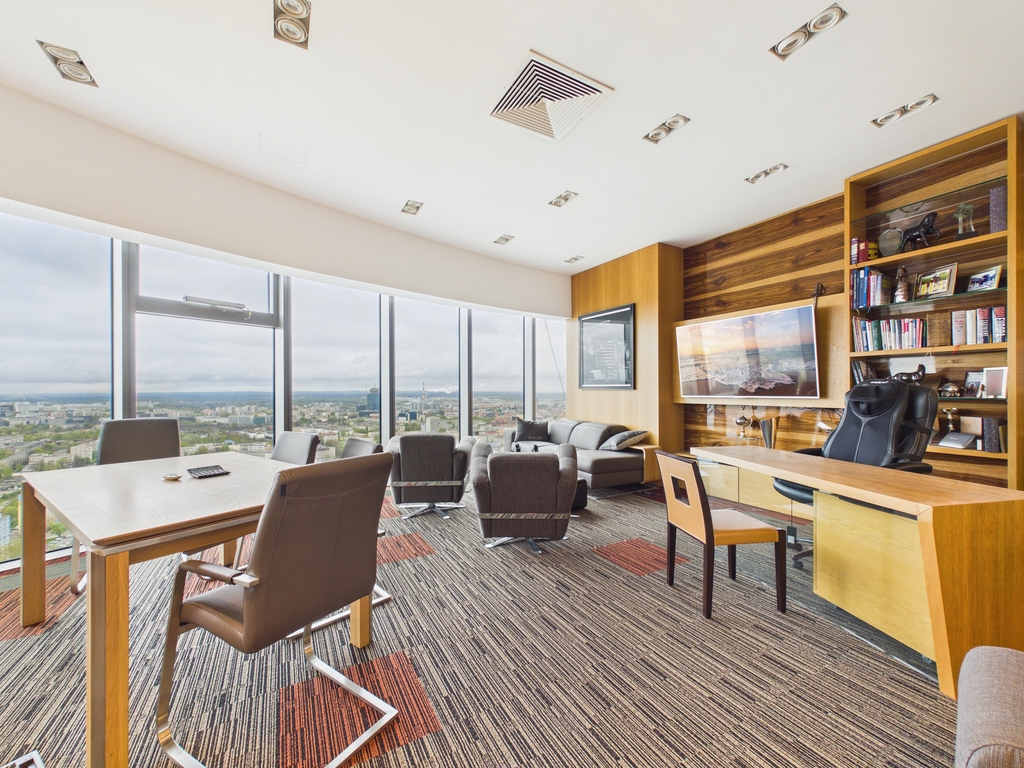 Unikalny lokal mieszkalny o powierzchni 97,6 m² zlokalizowany w głównej wieży Sky Tower. Obecnie zaadaptowany na nowoczesne biuro z łatwością może powrócić do pierwotnego, 3-pokojowego układu. Z każdego okna rozpościera się zapierający dech w piersiach widok na i południową-zachodnią panoramę miasta – idealne tło zarówno do pracy, jak i reprezentacyjnych spotkań.