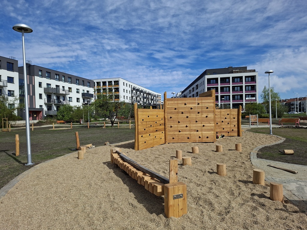 Bezpośrednio obok budynku powstał nowy zielony skwer z placem zabaw, idealny dla rodzin z dziećmi oraz osób ceniących bliskość terenów rekreacyjnych.