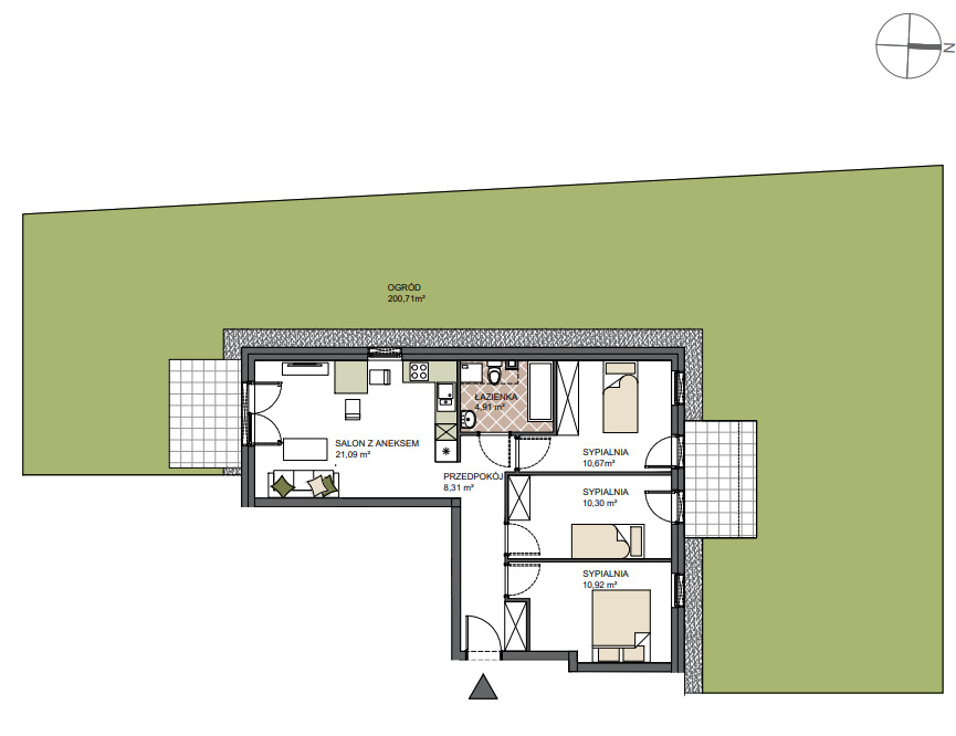 Mieszkanie znajduje się na parterze 2-piętrowego budynku, co zapewnia bezpośredni dostęp do ogrodu i komfort codziennego użytkowania.