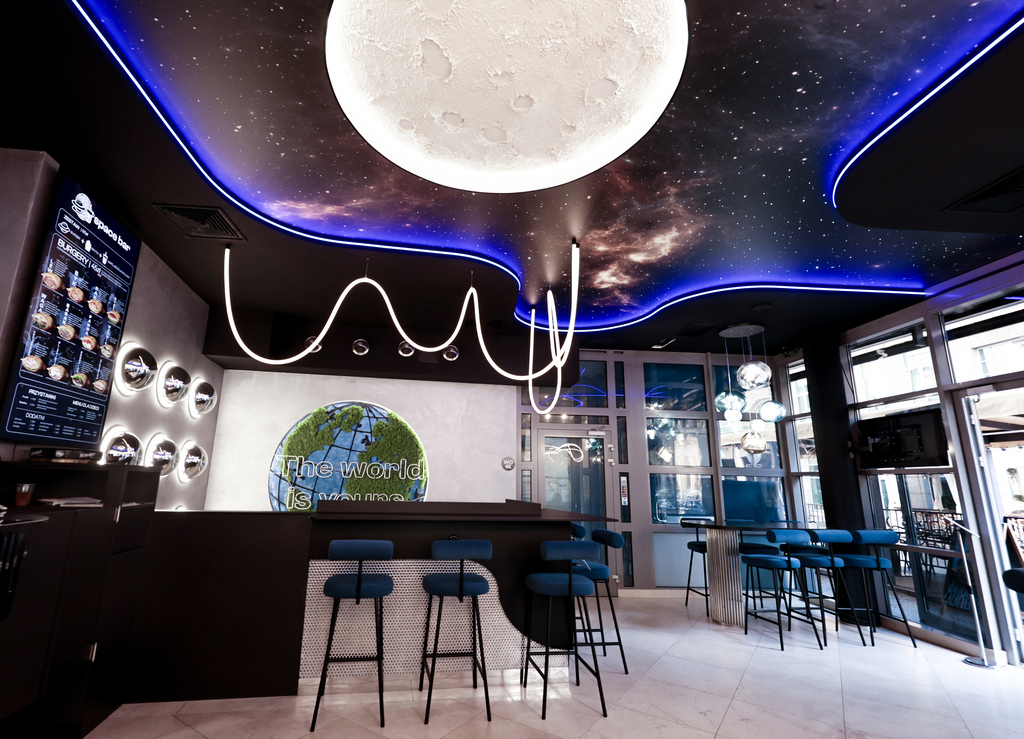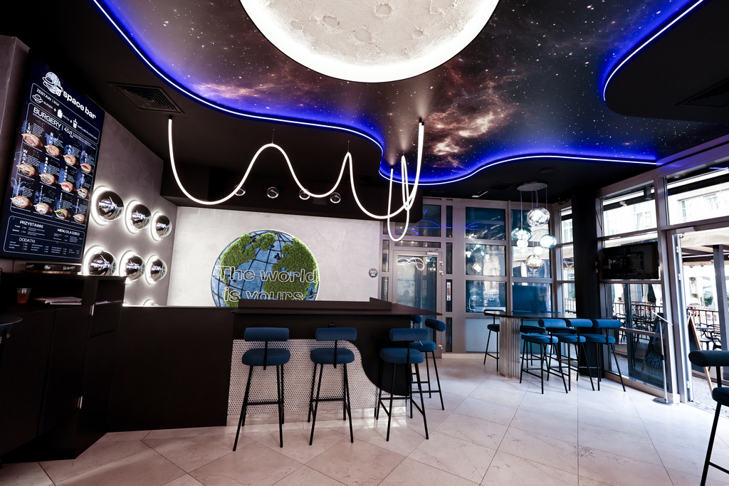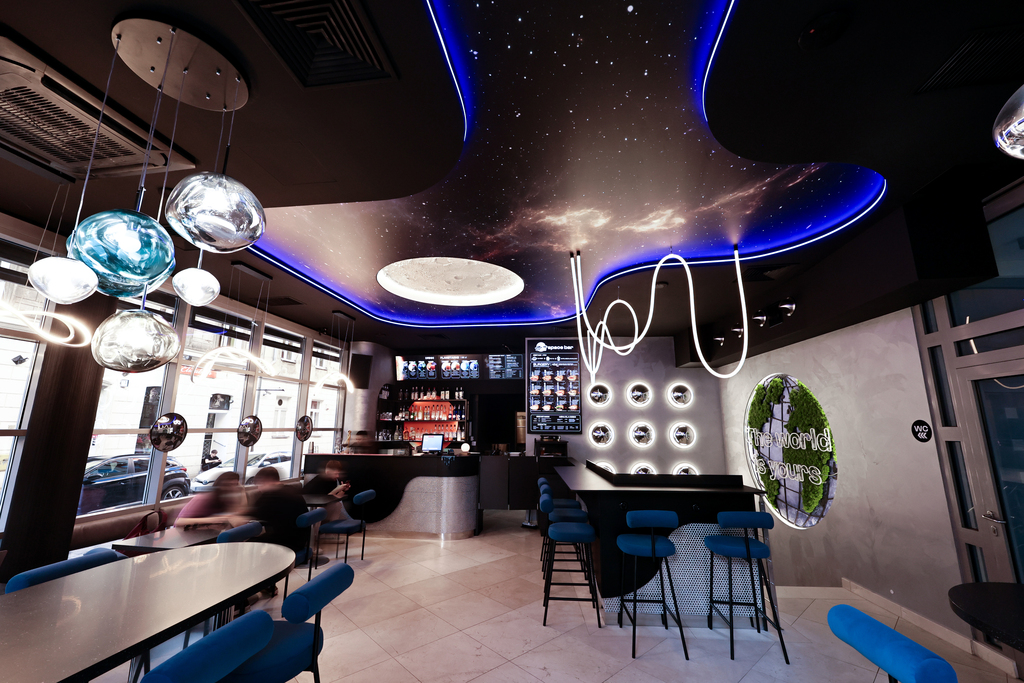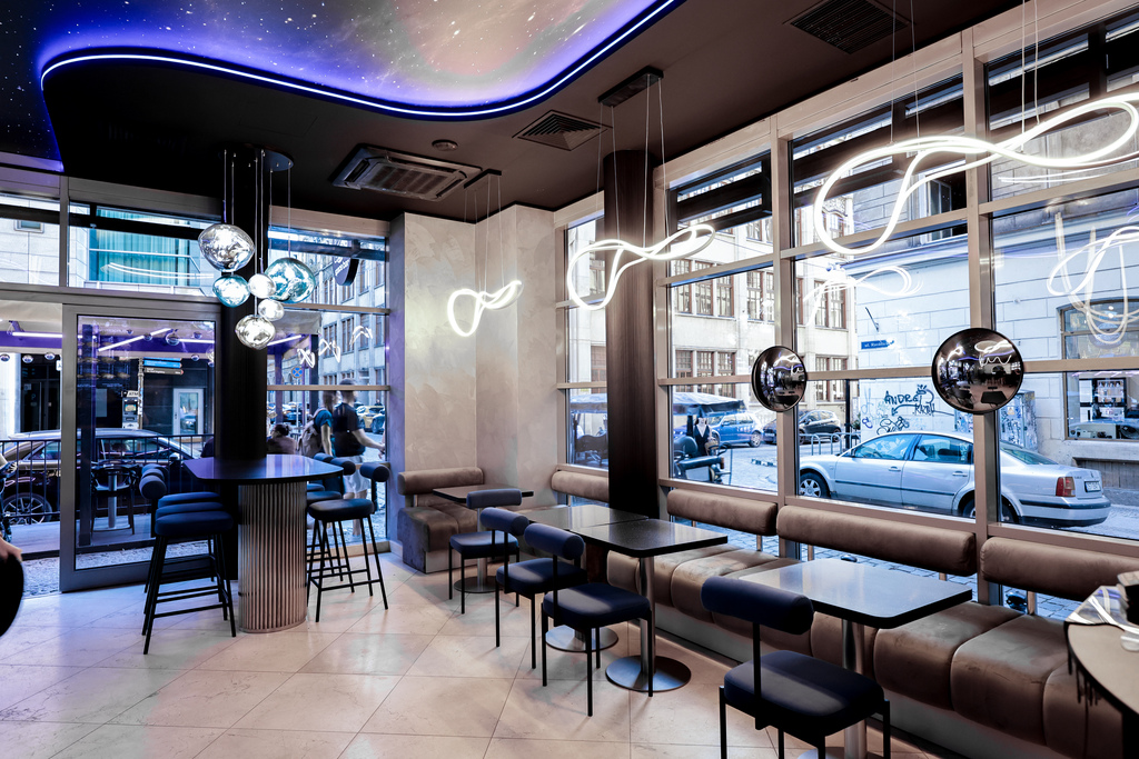 - 70 miejsc siedzących (kanapy, stoły, krzesła oraz wysokie krzesła)