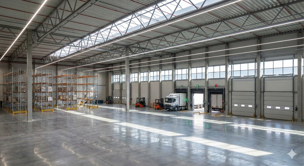- Elastyczność: Możliwość wynajęcia całości lub podziału hali na trzy niezależne moduły o powierzchni ok. 716 m² każdy.