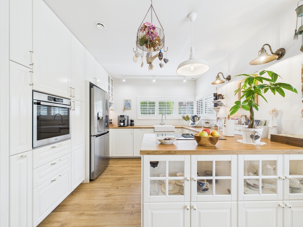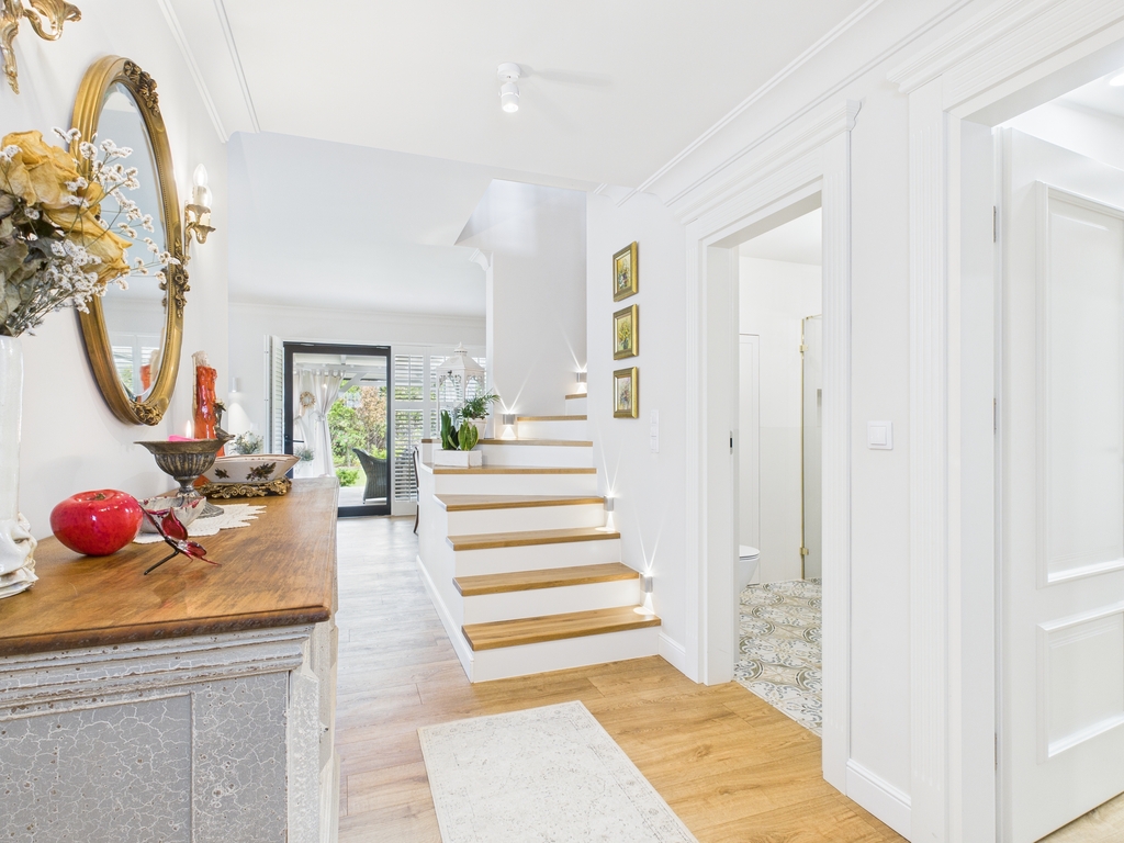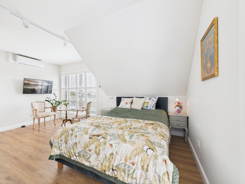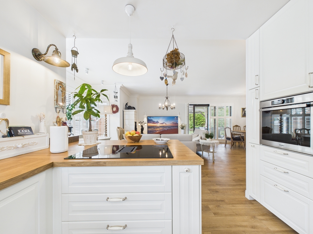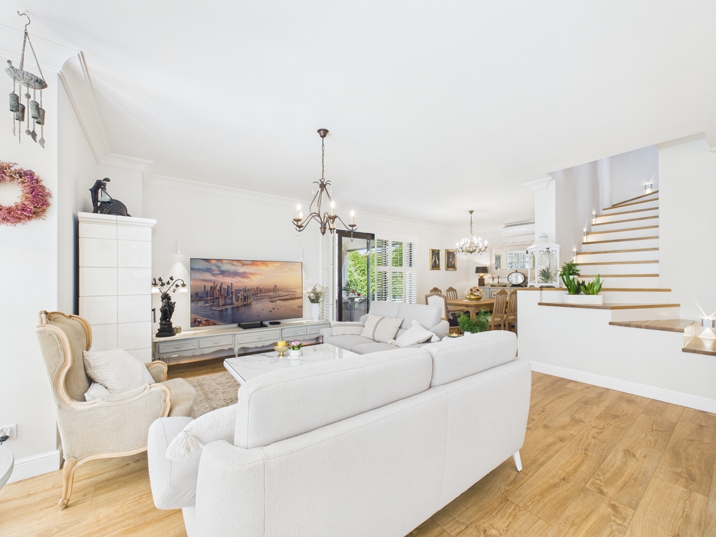 Ekskluzywne drewniane shuttersy, subtelne dodatki i materiały najwyższej jakości nadają całości charakter miejsca, które zachwyca przy każdej wizycie. To nieruchomość idealna dla osób, które pragną połączyć luksus i ciszę z bliskością miasta.