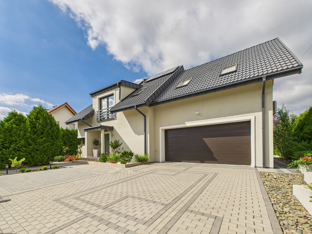 Dom oferuje nowoczesne rozwiązania technologiczne – ogrzewanie podłogowe, klimatyzację z funkcją grzania, rekuperację z funkcją grzania, dbającą o jakość powietrza, fotowoltaikę a także szybkie łącze światłowodowe. Każdy szczegół został zaprojektowany z myślą o energooszczędności i wygodzie.