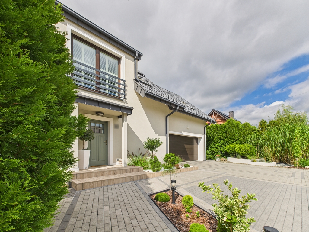 Dom, wybudowany w 2014 roku, w ubiegłym roku przeszedł gruntowną modernizację, która nadała mu nową jakość i świeżość. Od elewacji i pokrycia dachu, po instalacje i starannie zaprojektowane wnętrze – wszystko zostało przemyślane tak, by tworzyć spójną i funkcjonalną całość.