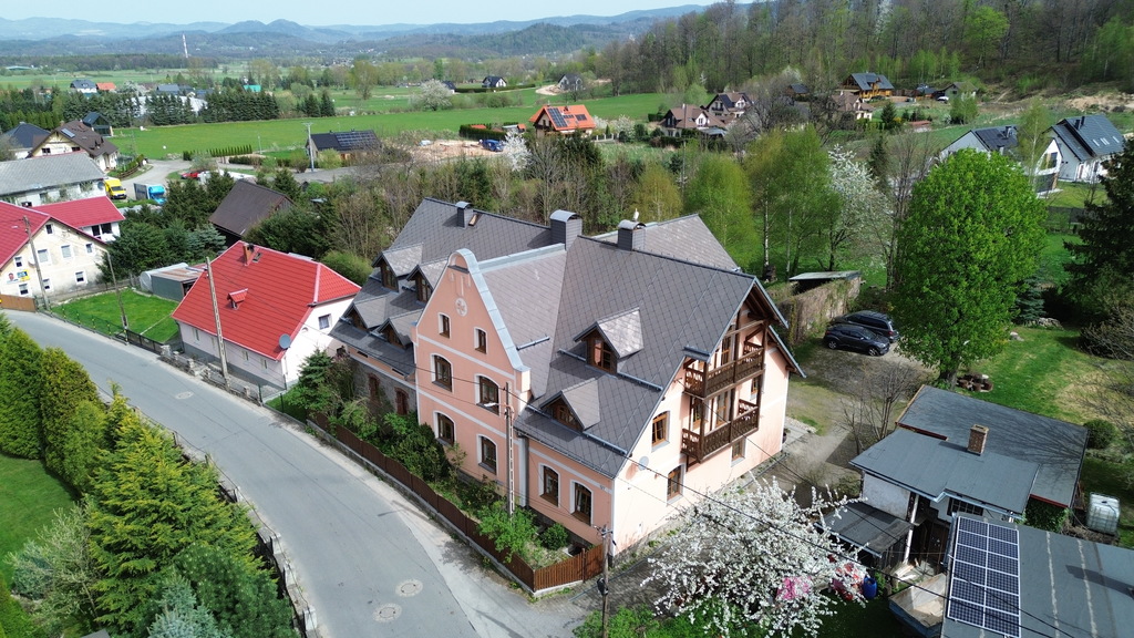 Prezentuję państwu atrakcyjny obiekt położony we wsi Ścięgny gmina Podgórzyn. Miejscowość znajduje się ok.400mb od granicy z Karpaczem przy miasteczku Western City i 3 km od centrum Karpacza. Ścięgny są położone wśród bajecznego krajobrazu z widokiem na góry.
