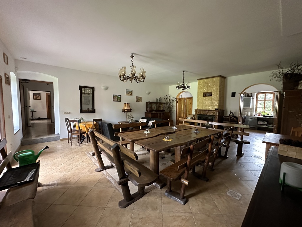 w części prywatnej znajduje się pięć pokoi, w tym cztery z łazienkami, dużego salonu z aneksem kuchennym, dwóch apartamentów z aneksami kuchennymi i łazienkami; garderoby, pomieszczenia gospodarczego i biblioteki. Do części prywatnej należy salon z kominkiem i dużą kuchnią, jest to część obiektu udostępniana dla gości, którzy wynajmują nocleg w obiekcie. Z części prywatnej jest wejście do piwnicy, w której znajduje się kotłownia z piecem gazowym, pomieszczenie gospodarcze, pomieszczenie z piecem na groszek. Pomieszczenia oddzielone są drzwiami w klasie odporności ogniowej.