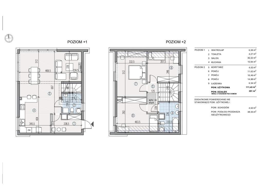 Prezentowany dom o pow. 111,43 mkw składa się z: