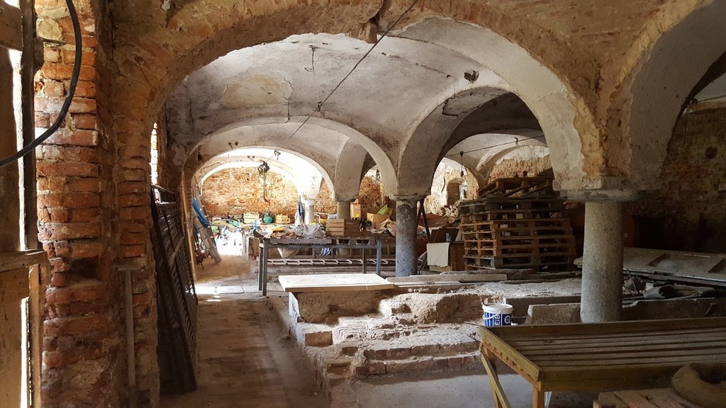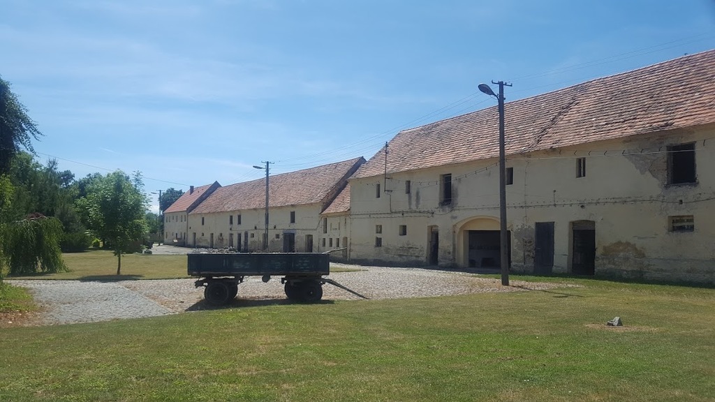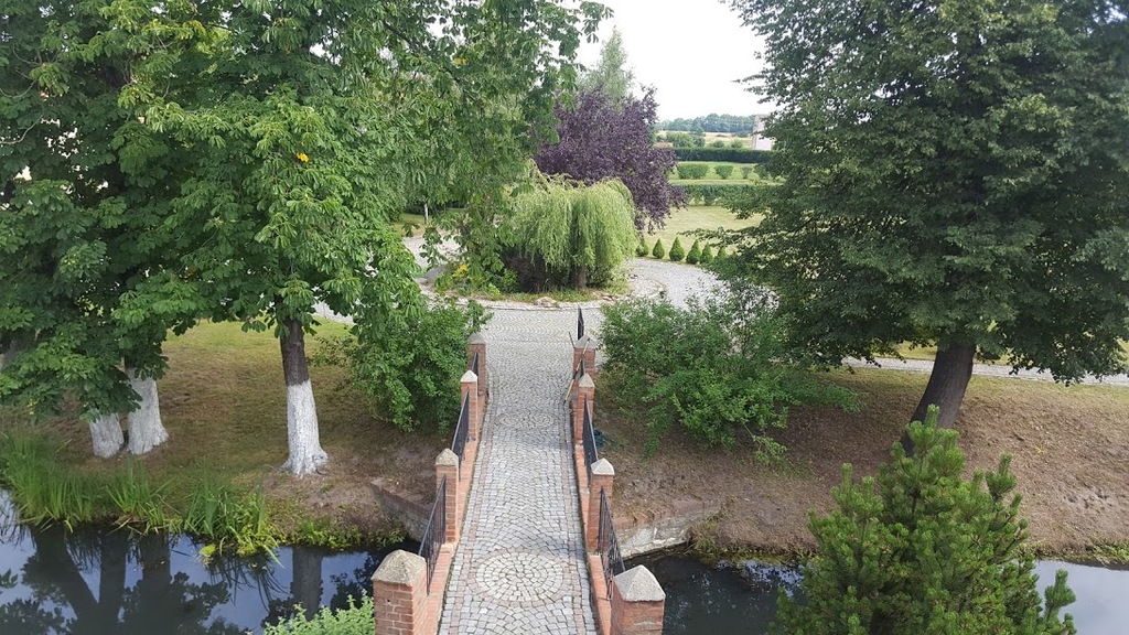 Wyjście z budynku dworu (od strony podwórka) możliwe jest wyłącznie poprzez ceglany most położony nad fosą.