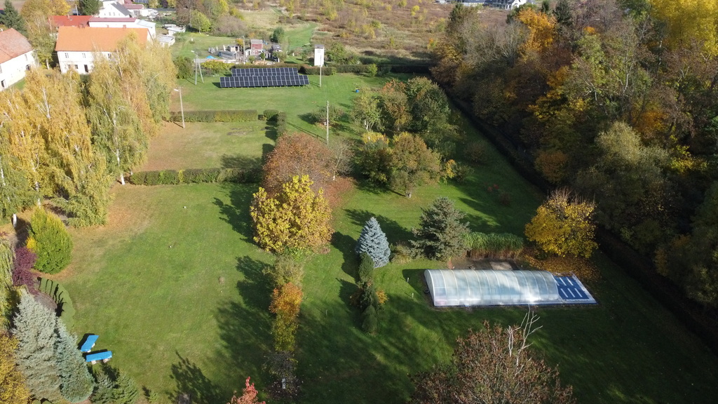 Cześć działki przeznaczona jest na potrzeby jej mieszkańców tj. m.in. ogród z sadem o powierzchni ok.0,20 ha oraz cześć wypoczynkową z basenem o wymiarach 6,6 na 12,5 metra. Wspomniany basen zadaszony dachem przesuwanym z podwójnego poliwęglanu o wysokości 3 metry nad lustrem wody. Dzięki zadaszeniu woda jest naturalnie podgrzewana, a kąpiele w basenie są możliwe od maja do końca września.