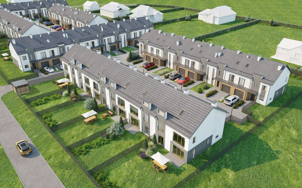 Na sprzedaż nowoczesny dom w zabudowie szeregowej, położony na kameralnym osiedlu Słoneczny Zakątek w zielonej i spokojnej części Kątów Wrocławskich, z szybkim dojazdem do Wrocławia.